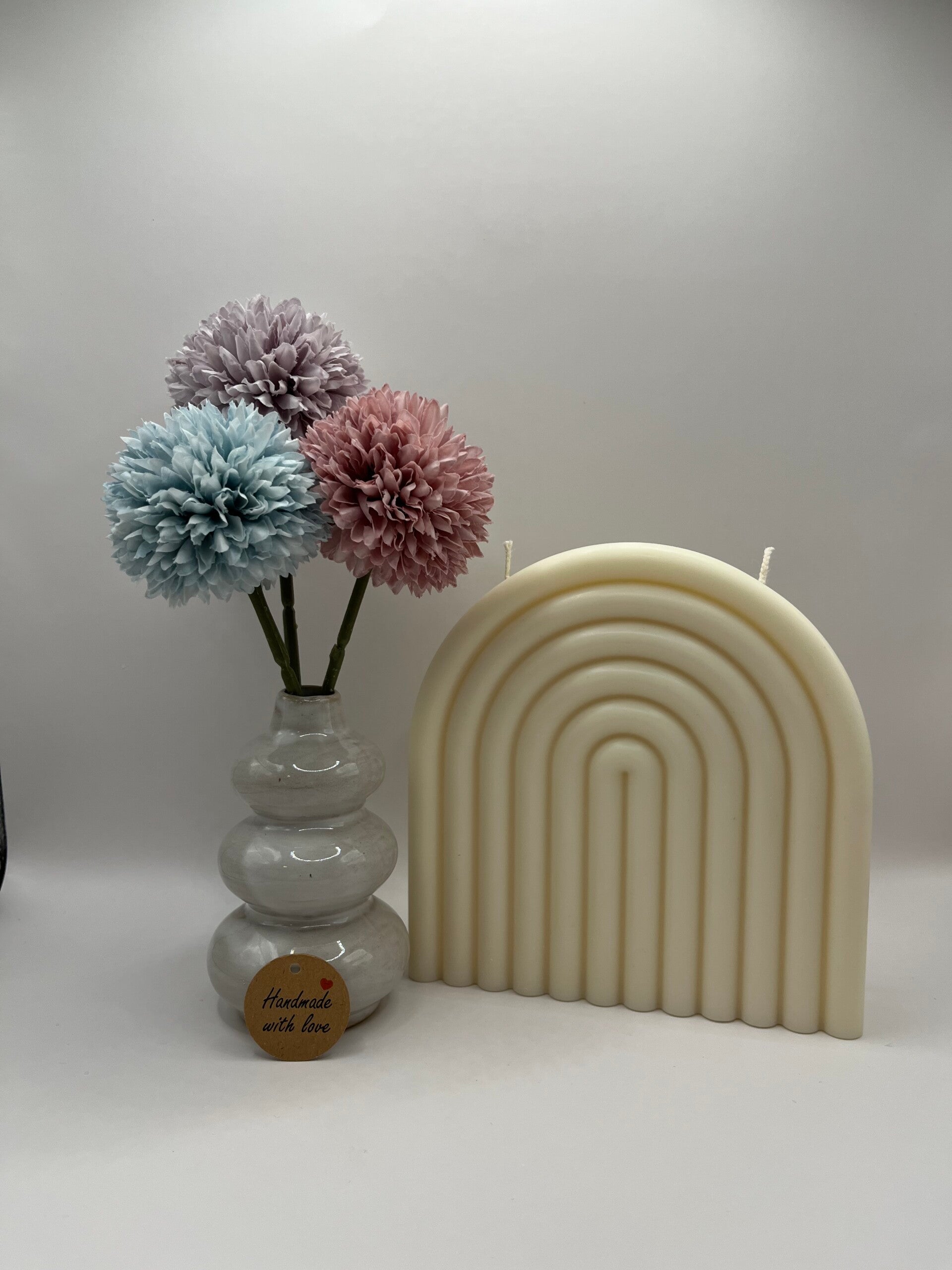 Diese Kerzenform erinnert an einen Regenbogen und sorgt für eine ruhige, harmonische Atmosphäre.