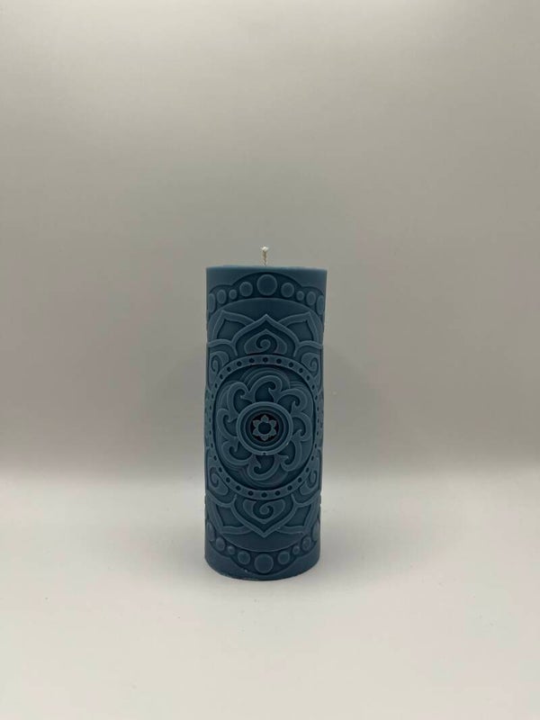 Diese kunstvolle Kerze vereint filigrane Mandala-Muster mit einer edlen Ausstrahlung.
