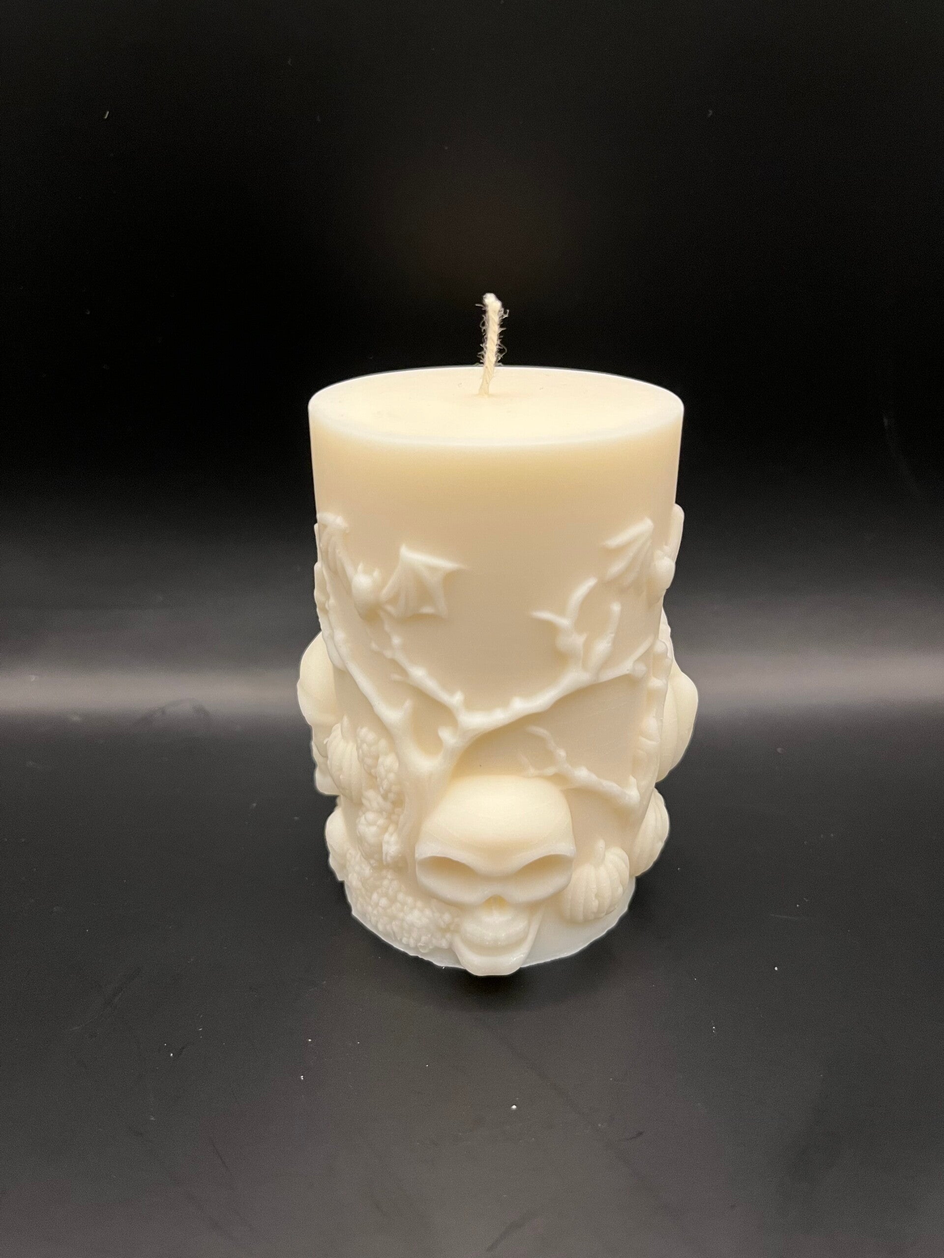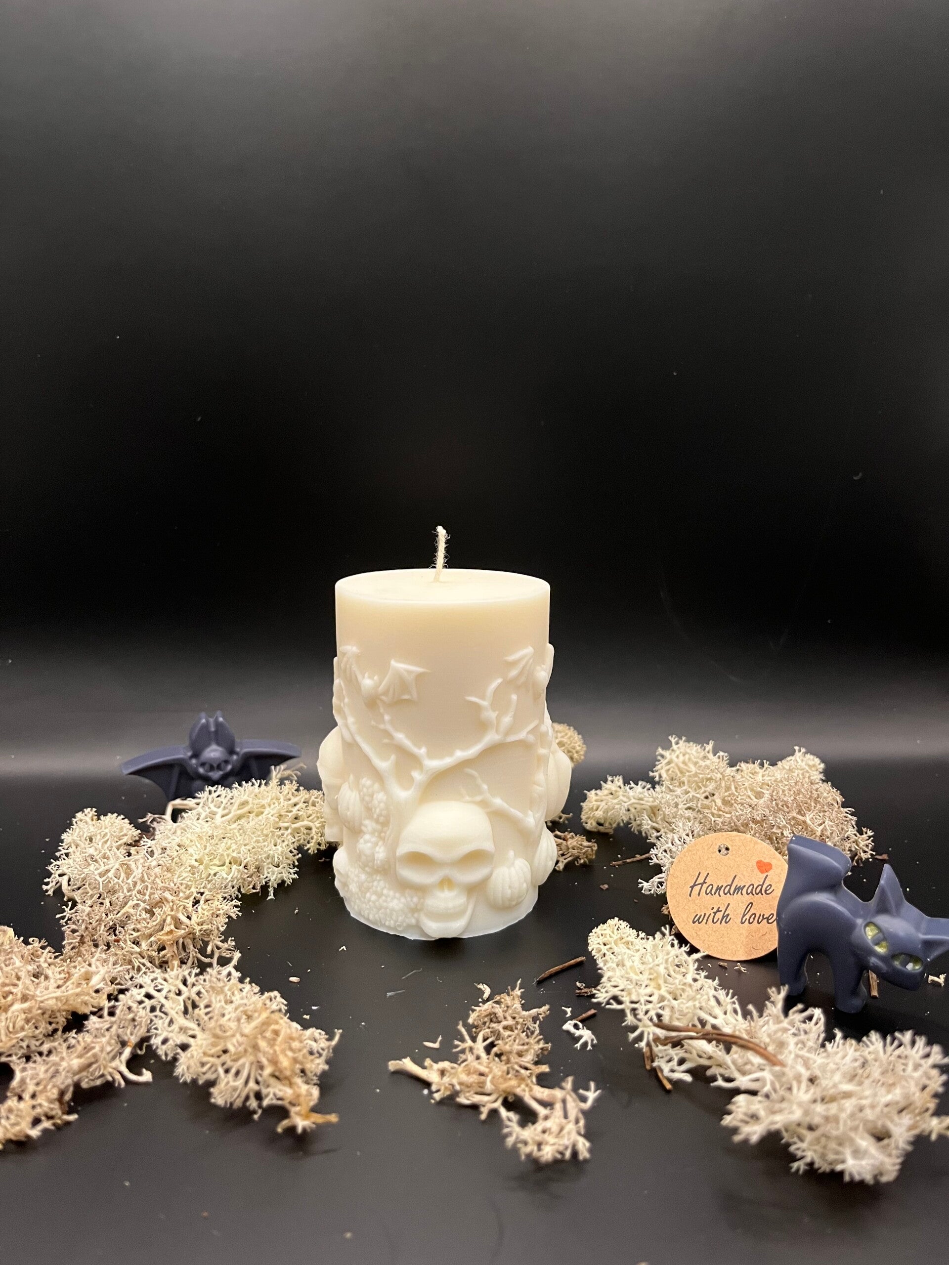 Gruselig schön: Diese Kerze bringt Schädel, Kürbisse und ein Hauch Mystery in dein Zuhause.