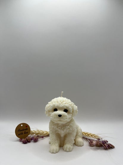 Diese Kerze bringt die Liebe zu Hunden in wunderschöner und detailreicher Wachsform zu Ausdruck.